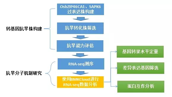 植物抗旱研究的老師看過來了,近期華中農(nóng)業(yè)大學水稻研究團隊成功構(gòu)建水稻雙基因轉(zhuǎn)化抗旱株,并借助百邁客云計算平臺(luyaonixin.cn)挖掘該抗旱株轉(zhuǎn)錄組測序數(shù)據(jù),完成對該新型水稻抗旱株抗旱機制初步探究。